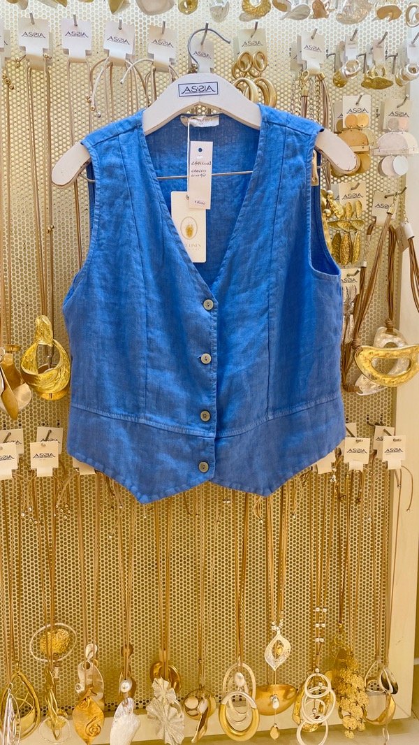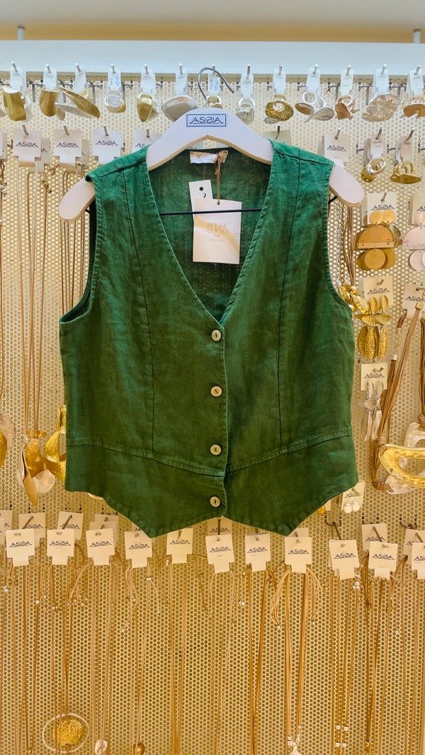 Chaleco de corte sastrero confeccionado botones, confeccionado en Lino Italiano.