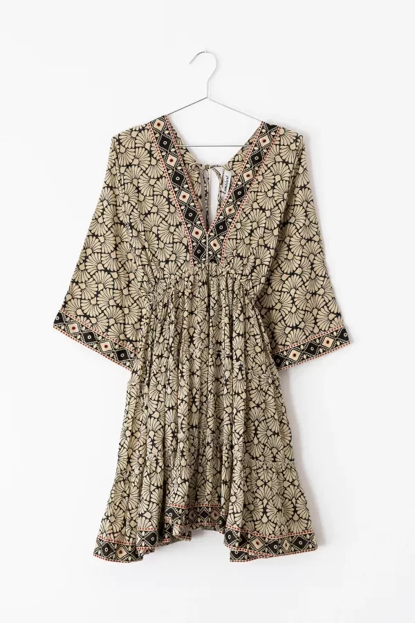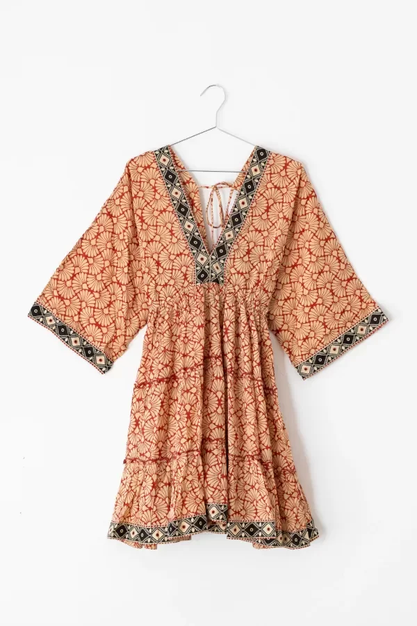 Vestido corto confeccionado en algodon print. Posee escote V en delantero y espalda.